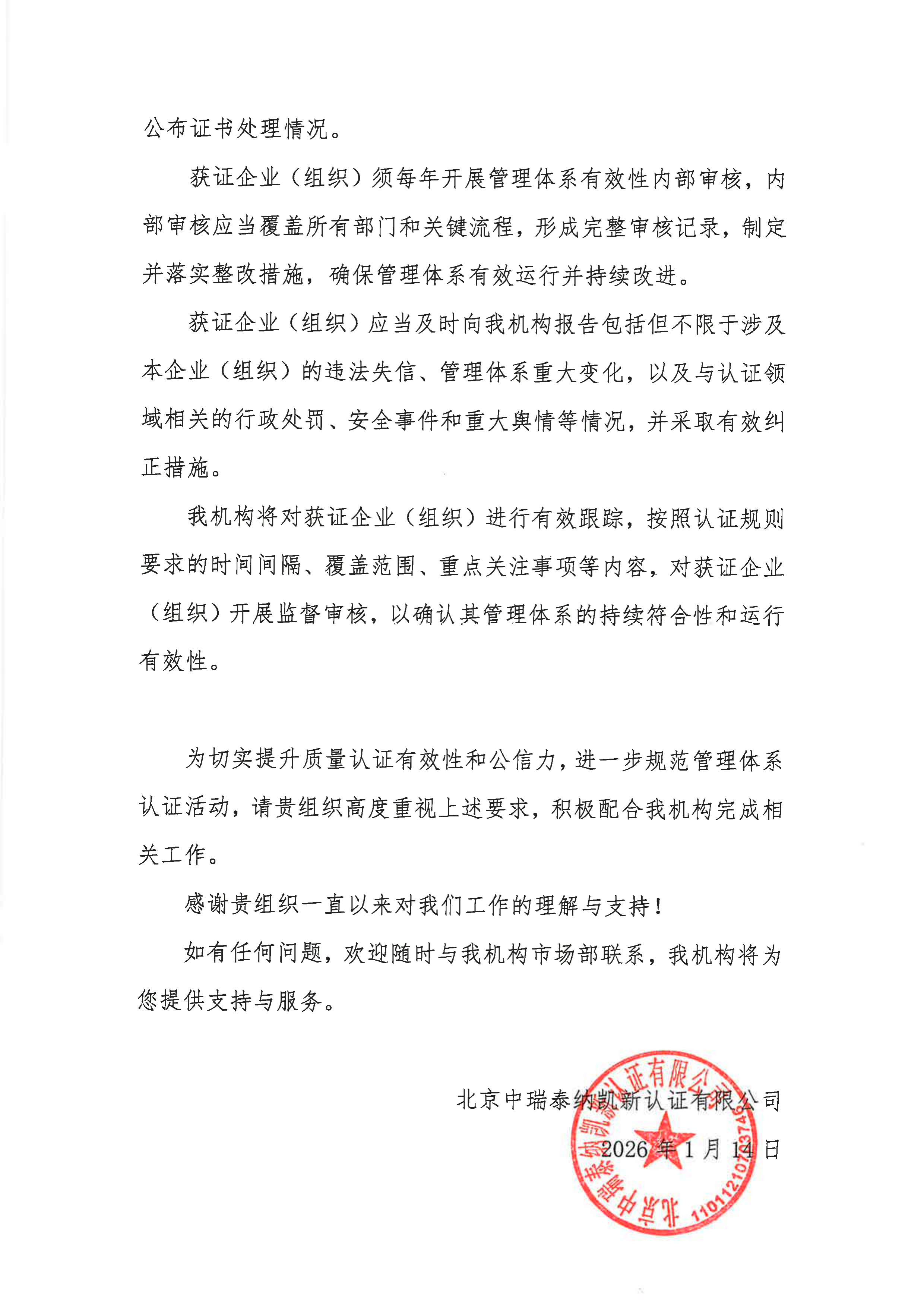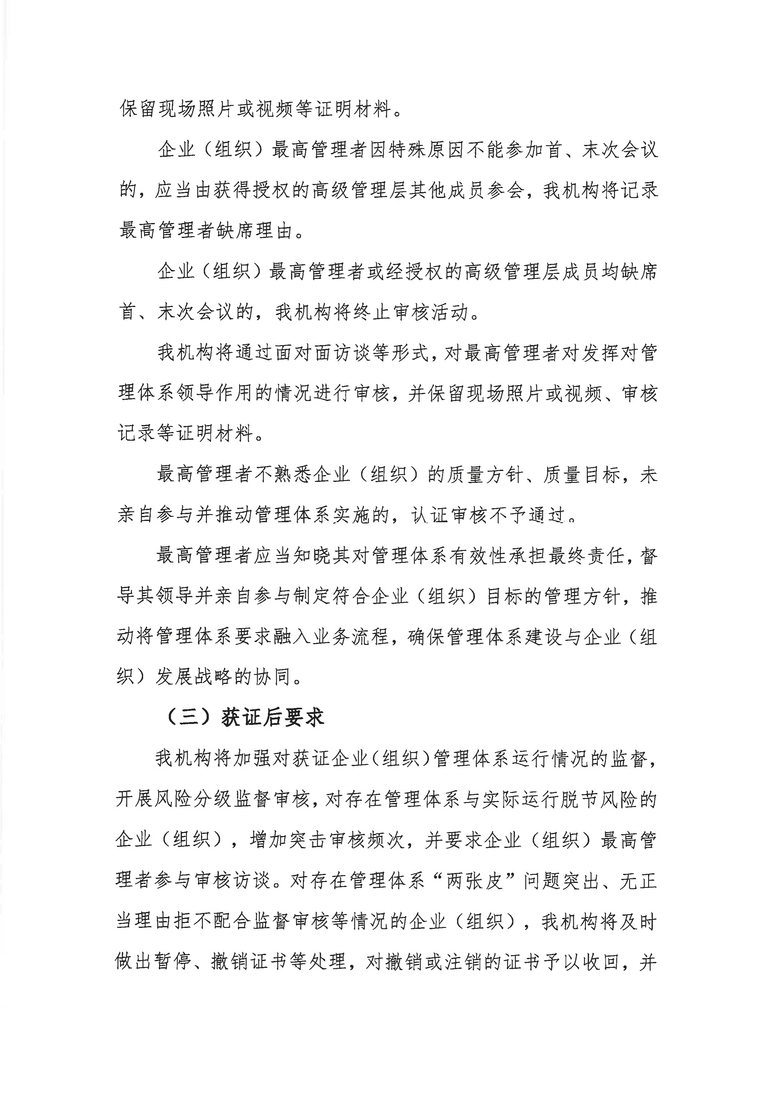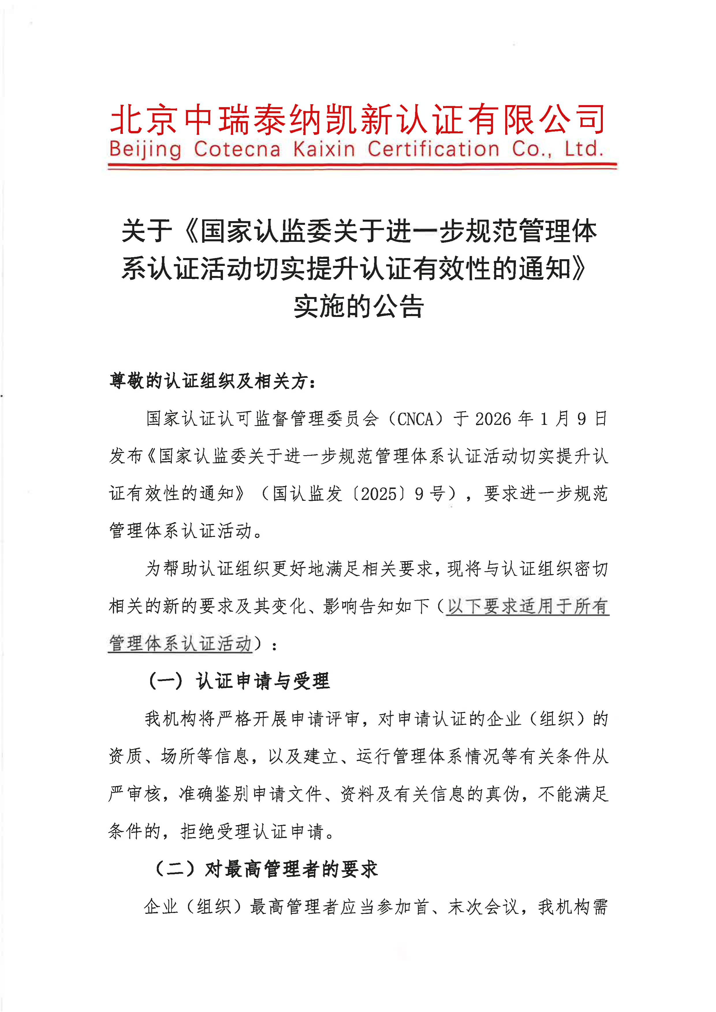 关于《国家认监委关于进一步规范管理体系认证活动 切实提升认证有效性的通知》实施的公告
