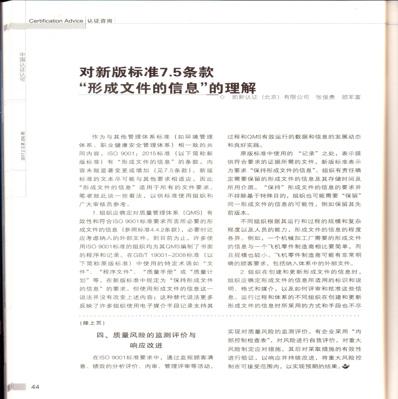 喜贺我公司顾军富老师文章再获《中国认证认可》杂志刊载292017-03